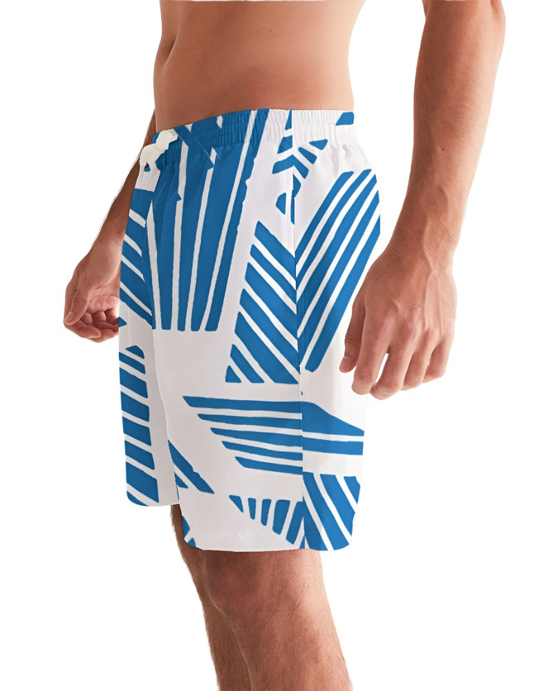 Blue Geometric Men's Swim TrunkHead to the beach in our classic fit Men's Swim Trunks made with comfort in mind. With an adjustable drawstring waistband, its smooth and durable materials made with UPF 50+ gives you premium UV protection.